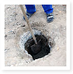 V určitej vzdialenosti (podľa typu plotu) sa hĺbia montážne otvory pre inštaláciu stĺpov o hĺbke 60-120 cm a priemere 40-45 cm.