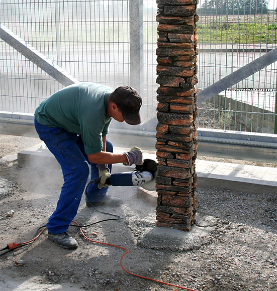 Obe časti stĺpu sa upevnia v otvore a následovne sa zabetónujú.